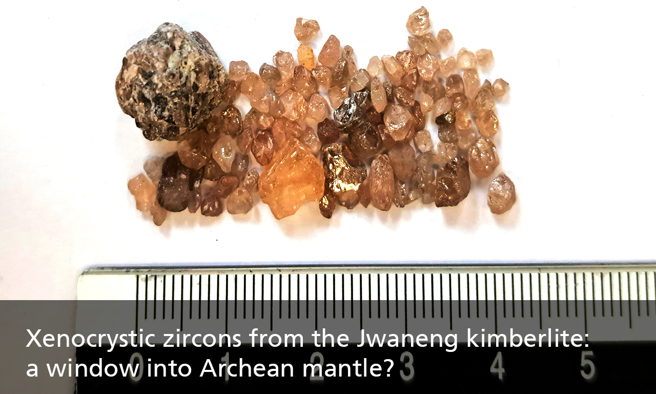 Zircon is a robust recorder of magmatic processes and its occurrence in kimberlites offers the opportunity to study deep mantle processes. The Jwaneng kimberlite (Botswana) contains a young kimberlite-related zircon population as well as an older population with Paleoproterozoic-Archean ages. For the older population it is unclear whether these zircons were formed at 3.2-3.6 Ga (Hf model age) with Pb retention between 2.8 and 2.1 Ga, or were formed between 2.8 and 2.1 Ga with an inherited older Hf component. This project will consist of a comprehensive study on a larger number of zircons with the aim to determine the process responsible for zircon formation by i) a detailed description of the zircons for their morphology, colour, and growth structure (CL imaging), ii) trace element analysis of each sub-population (LA-ICP-MS), iii) U-Pb geochronology (via LA-ICP-MS).